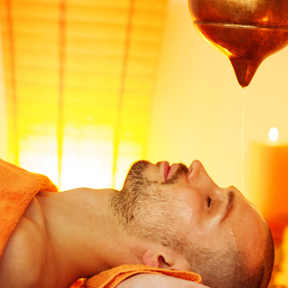 A calming Ayurvedic therapy where warm medicated oil is gently poured on the forehead to relax the mind. It helps reduce stress, improves sleep, and brings deep mental relaxation.